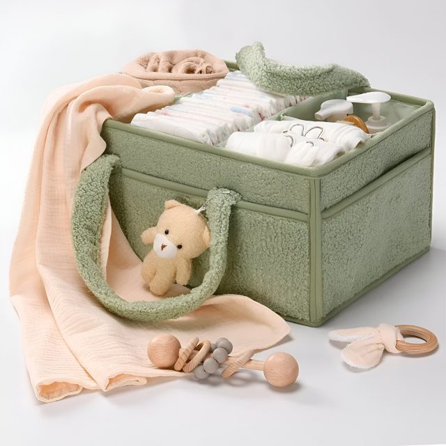 The Portable Baby Diaper Organizer Caddy is your ultimate solution to keeping baby care essentials neatly organized and within easy reach. Designed for busy parents, this stylish and functional diaper caddy helps you manage all your newborn items—diapers, wipes, lotions, toys, and more—in one convenient place. Whether you’re at home or on the go, it keeps your baby essentials tidy and accessible, making diaper changes faster and stress-free.