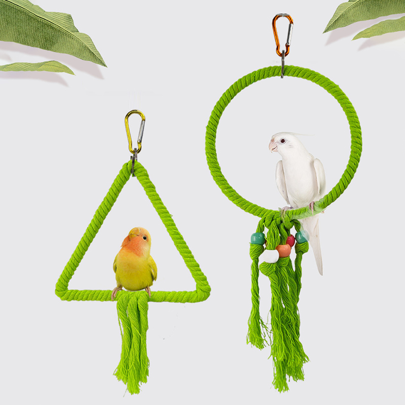 Turn your bird’s cage into a playful paradise with this charming Parrot Cage Swing Toy. Designed in both round and triangular shapes, this hanging ring toy is crafted from durable iron wire wrapped in soft cotton thread. It offers your feathered companion the perfect place to swing, perch, and play, keeping them happy and active every day.
