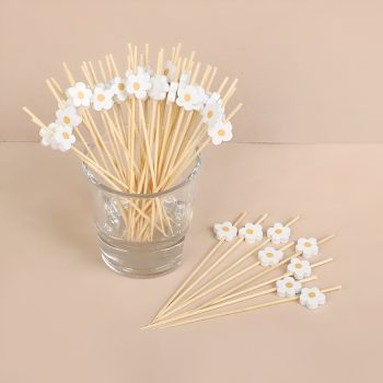 100Pcs White Daisy Bamboo Food Picks – Party & Dessert Decoration Forks