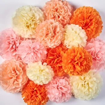 15Pcs Boho Pink & Orange Tissue Pom Poms – Paper Flower Hanging Party Decor