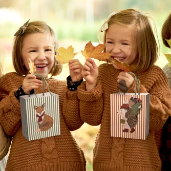 8Pcs Woodland Animal Party Favor Bags – Fox & Hedgehog Fall Goodie Bags