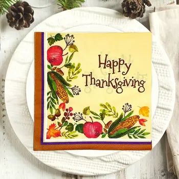 Thanksgiving Harvest Corn & Maple Leaf Party Napkins – 20pcs, 13 inch