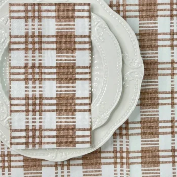 20pcs Coffee Plaid Printed Party Napkins – 2 Ply Decorative Paper