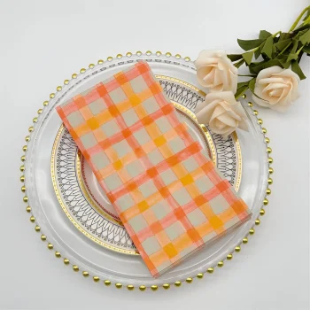 20pcs Orange Plaid 2-Ply Party Napkins – Holiday & Event Tissue Paper