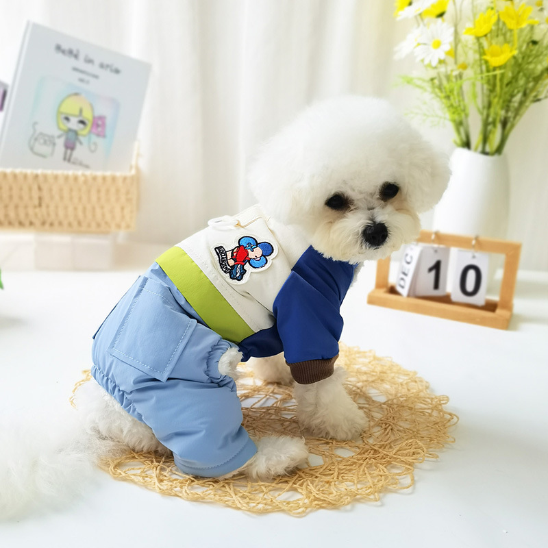 Pet Autumn and Winter Color Blocked Outdoor Leisure Dog Parkas Set Cute Jumpsuit Pet Overalls Dog Pajamas Puppy Clothes