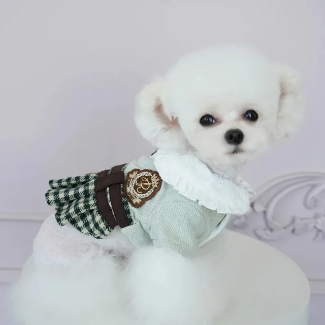 Winter Plaid Pet Dress Coat for Cats & Small Dogs