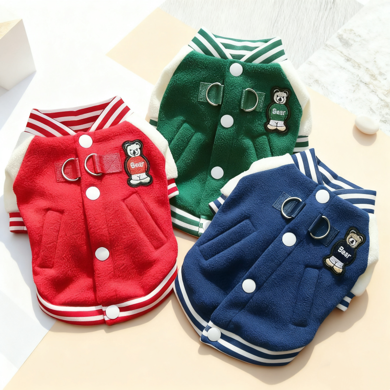 Make your pet the center of attention this season with our Bear Print Pet Baseball Jacket. Designed for both dogs and cats, this fashionable jacket combines warmth, comfort, and an irresistibly cute style. Whether you’re walking your pup on a chilly morning or keeping your cat cozy indoors, this jacket is the perfect blend of fashion and function. Available in vibrant red, green, and blue, it’s a must-have for trendy pet owners who love to pamper their furry companions.