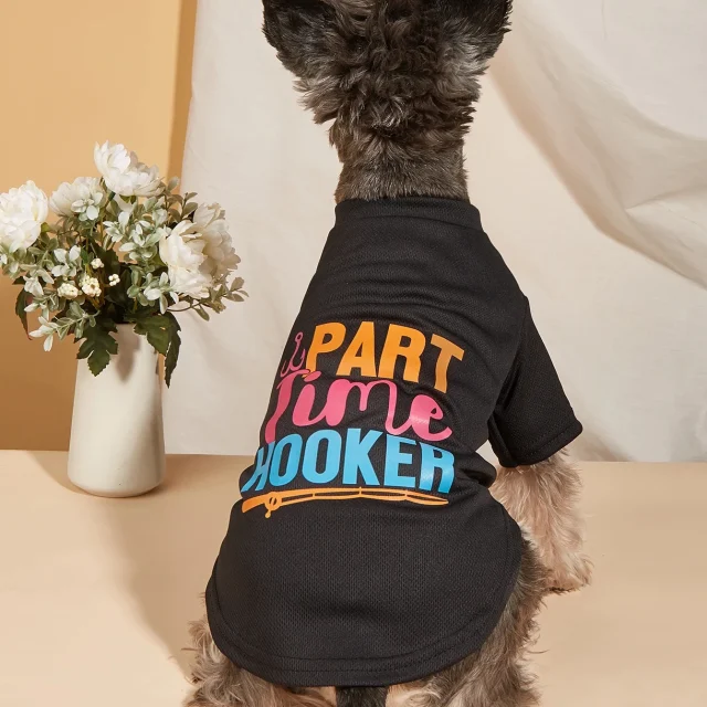 Make your furry friend the star of every room with this playful and stylish pet t-shirt. Designed for both dogs and cats, this colorful “PART TIME HOOKER” printed tee adds a touch of humor and personality to your pet’s wardrobe. Perfect for pets who love to stand out, this t-shirt is not just cute, but also soft and comfortable for all-day wear. Its vibrant print and fashionable design make it an ideal choice for pet lovers who want their companions to shine during playtime, walks, or casual indoor lounging.