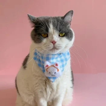 Adorable Plaid Pet Bib Collar – Cute Cartoon Triangle Scarf for Small Dogs