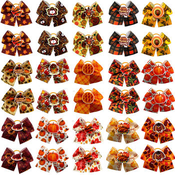 Thanksgiving Fall Dog Bowtie Set – 30pcs Small Pet Grooming Accessories