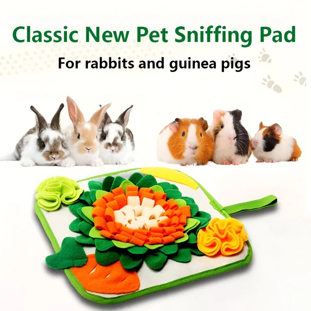 Give your little pet the joy of discovery with this Pet Sniffing & Foraging Mat – a playful and practical solution designed to stimulate your pet’s senses, slow down mealtime, and bring emotional comfort. Perfect for rabbits, hamsters, guinea pigs, and other small animals, this soft mat turns every feeding into a fun foraging adventure.
