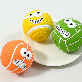 Smiley Face Latex Squeaky Dog Ball – Durable Chew Toy for Teeth Cleaning