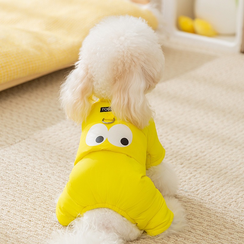 Available in vibrant yellow and red, this playful jacket features a unique big-eye monster design that adds a touch of charm and personality. Perfect for small to medium-sized dogs, the coat comes in a range of sizes from XS to XL, fitting dogs weighing from 3.3 to 16.5 lbs, ensuring a comfortable and secure fit for pets of all shapes.