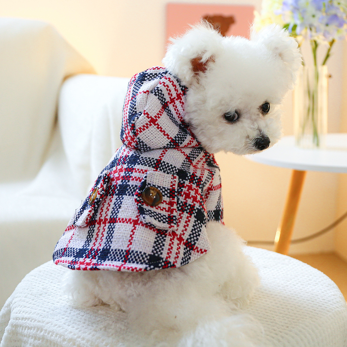 Wrap your furry friends in warmth and elegance this season with our Pet Woolen Plaid Coat. Designed to keep your small dogs and cats snug and stylish during the chilly autumn and winter months, this cozy hooded coat is the perfect blend of fashion and function. Made from high-quality polyester, it provides the ideal insulation against cold weather while letting your pet shine with chic plaid patterns.