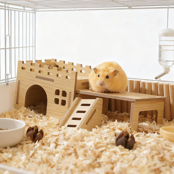 3PCS Wood Hamster Hidehouse with Platform & Ladder – Small Animal Cage Toy