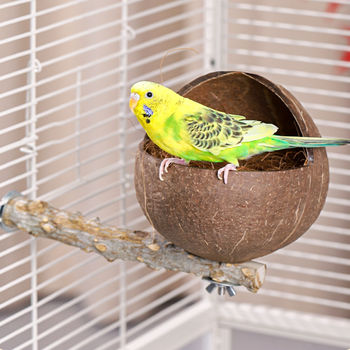 Parrot Bird Stand – Natural Coconut Shell with Bird Cage Accessory