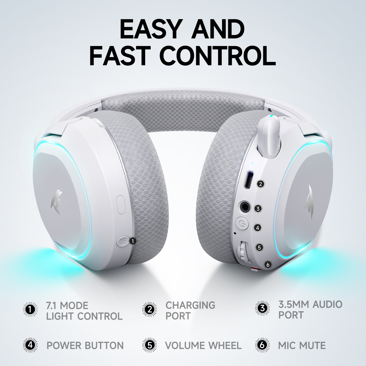 Enjoy a streamlined user experience with easy-to-reach controls. The headset supports a range of functions, including volume adjustment, mic mute, 7.1 mode light control, and charging port. The multi-functional buttons are placed for quick access, making it simple to make adjustments during your gaming sessions without missing a beat.
