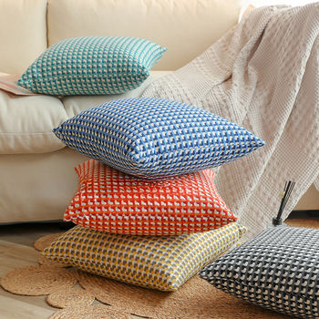 Woven Jacquard Grid Pillow Cover 18×18 Inch – Decorative Throw Cushion Case