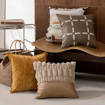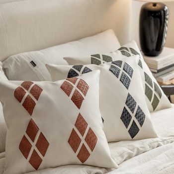 Luxury Leather Grid Throw Pillow Cover 18×18 Inch – Nordic Decorative Cushion