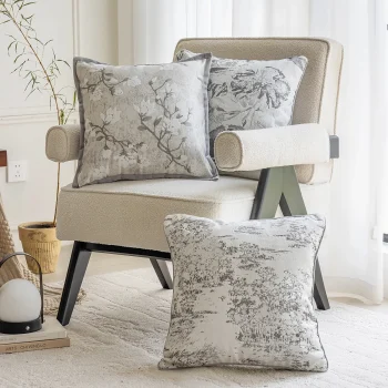 Modern Grey 18×18″ Throw Pillow Cover – Simple Stamped Decorative Cushion