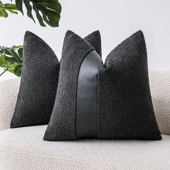 Luxury Cushion Covers Leather Patchwork Tweed Textured Pillow Cases