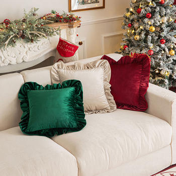 French Velvet Ruffled Edge Throw Pillow Cover