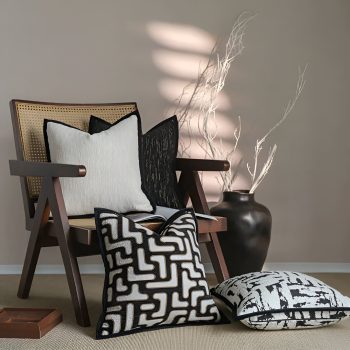 Luxury Black & White Geometric Jacquard Cushion Cover – Elegant Chenille Pillow Case