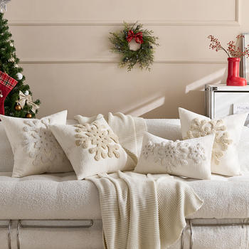 Christmas Embroidered Snowflake Pillow Cover Boho Cushion Case
