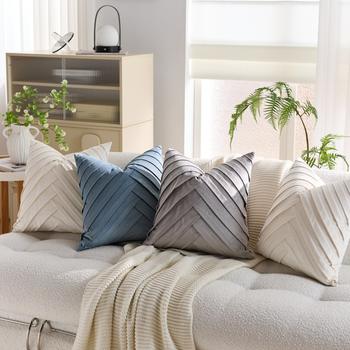 2 Pack Velvet Pleated Cushion Covers Square Decorative Pillowcases 18×18