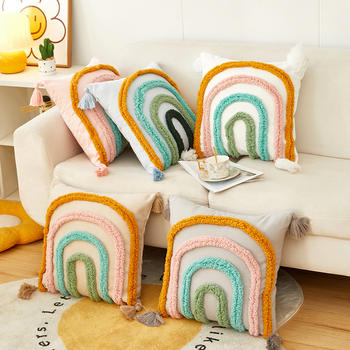 Bohemian Tufted Geometric Arch Pillow Cover with Tassels