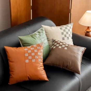 Luxury White Leather Plaid Throw Pillow Cover