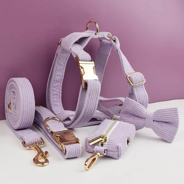 Practical, comfortable, and eye-catching, this pink purple corduroy dog collar and leash set is a must-have for every pet parent who wants the best for their furry companion. Add a touch of personality to your dog’s look today—because they deserve to feel as special as they are.