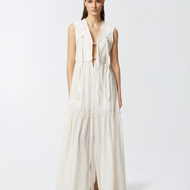 Pinko Sleeveless Cotton Maxi Dress with Utility Vest Top
