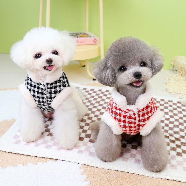 Plaid Dog Jacket with Fur Collar – Warm Puppy Vest Coat