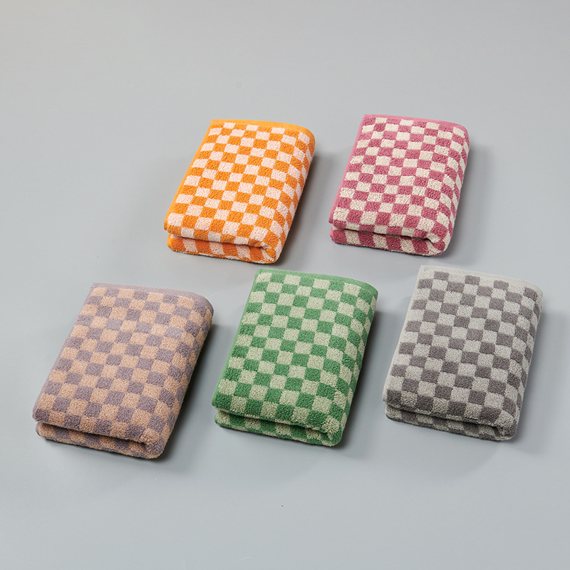 Plaid Cotton Jacquard Towel Set Soft Absorbent Face & Bath Towels