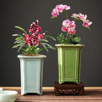 Square Celadon Glazed Porcelain Bonsai & Orchid Flower Pot