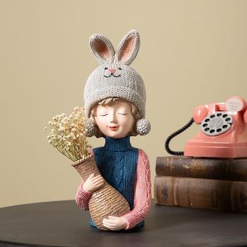 Creative Girl Resin Sculpture Glass Vase with LED Lights