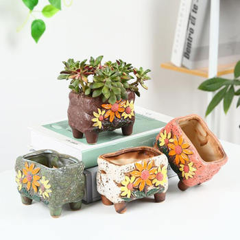 Korean Style Hand-Painted Ceramic Succulent Pot for Desk & Home Decor