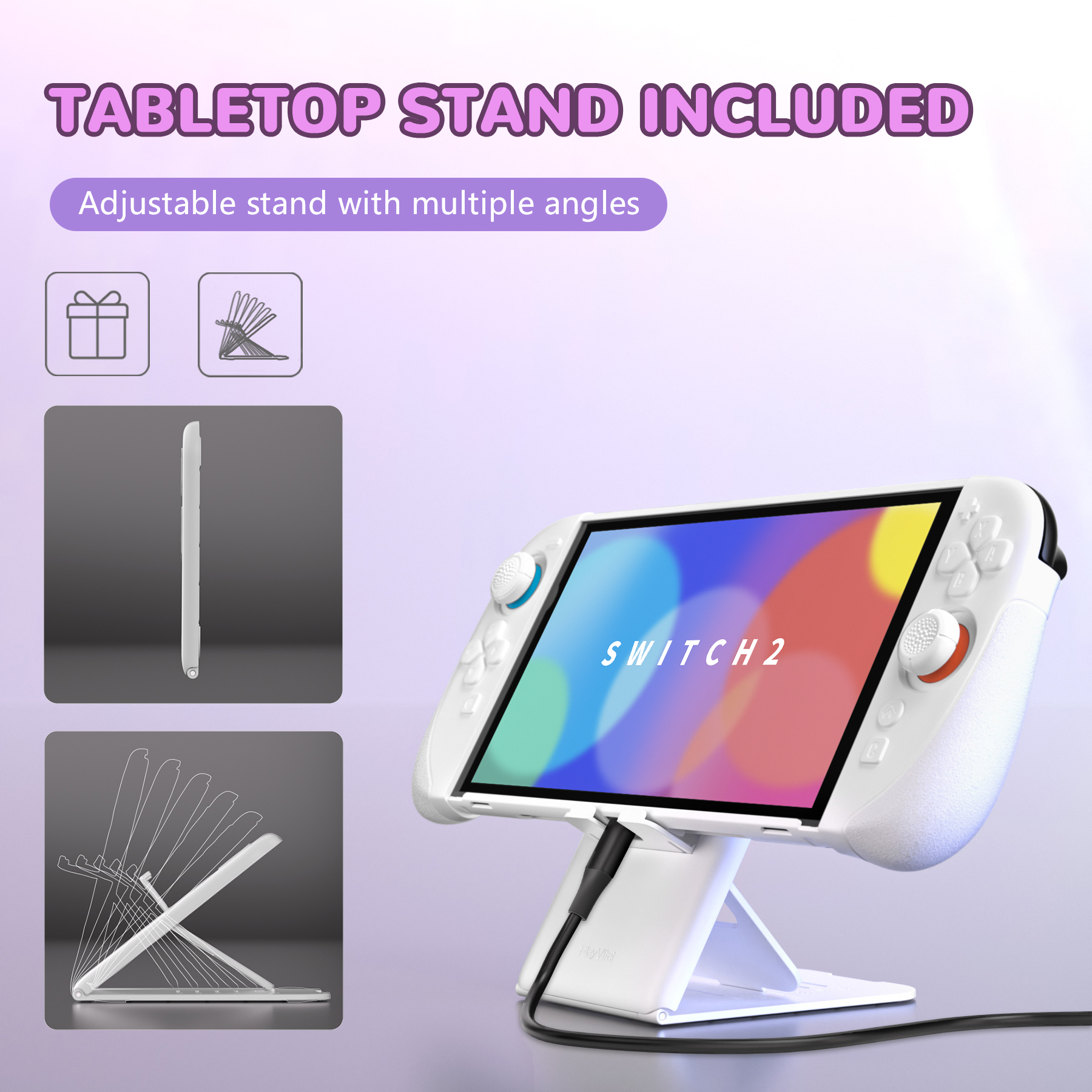 This protective set is ideal for anyone who enjoys taking their console on the go, playing for hours, or simply wanting a safer way to use their device. The silicone grips provide a cushioned, non-slip feel, making them perfect for intense battles, relaxing exploration games, or casual scrolling through menus. The included adjustable kickstand gives you five viewing angles—45°, 52.5°, 60°, 67.5°, and 75°—making it easy to enjoy hands-free gaming or video watching anywhere.