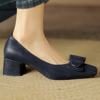 With a stable 2-inch (5 cm) medium-thick heel, these pumps are ideal for long days at the office, business meetings, or casual outings where you want to look polished without sacrificing comfort. The slip-on design makes them easy to wear, while the solid pattern and subtle bow detail add a sophisticated touch to any outfit. Whether paired with skirts, dresses, or tailored trousers, these shoes elevate your look effortlessly.