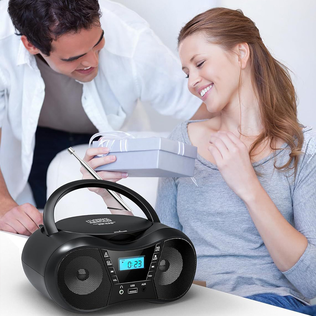 Use this inviting boombox whenever you want to enjoy music. Whether it’s for a relaxing evening at home, a lively outdoor gathering, or a fun road trip, this CD player boombox adapts to every scenario. It’s also perfect for students looking to add some music to their study sessions or for families seeking an enjoyable way to pass the time together.