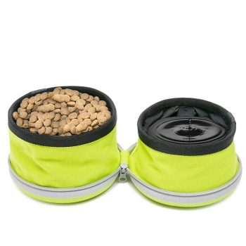 Collapsible Double Dog Bowl with Waterproof Food Mat