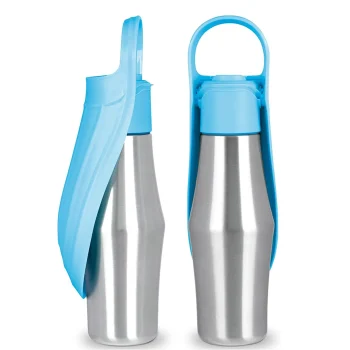 27oz Stainless Steel Dog Water Bottle with Leaf-Shaped Travel Bowl