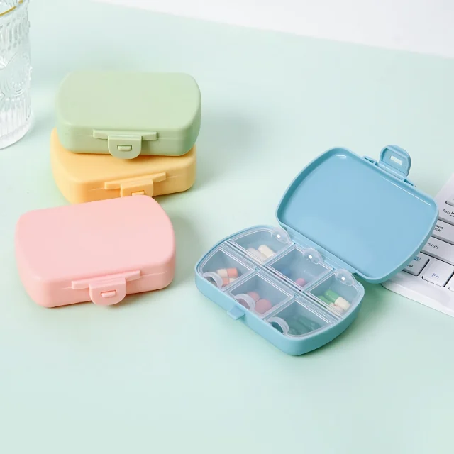 Portable 6-Compartment Travel Pill Organizer – Small Medicine Storage Box