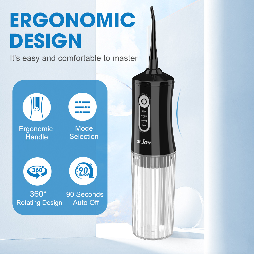 This water flosser is more than just convenient—it’s built to perform. The 200ml full-opening water tank is easy to refill and clean, ensuring no buildup of limescale. The 1400 pulses per minute deliver high-pressure water flow through a 360° rotating nozzle, designed to clean deep between teeth and along the gumline. Whether you have braces, implants, or sensitive gums, the 4 interchangeable nozzles and multiple cleaning modes provide a tailored experience for every mouth.