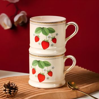 French Retro Strawberry Ceramic Mug – Hand-painted European Coffee Cup
