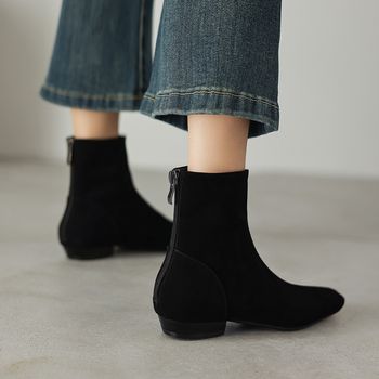 Winter Women’s Suede Leather Zip Ankle Boots with Chunky Heel