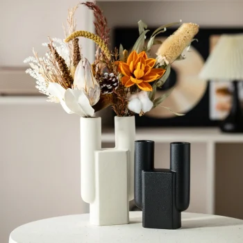 Abstract U-Shape Ceramic Vase – Modern Geometric Sculpture for Dried Flowers