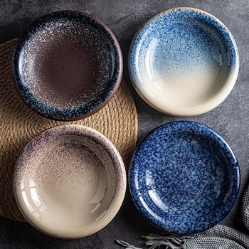 Elegant Round Ceramic Plates for Salads, Sashimi & Main Courses