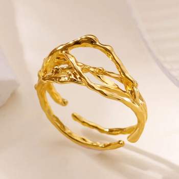 Gold Plated Adjustable Geometric & Flower Zircon Ring for Women